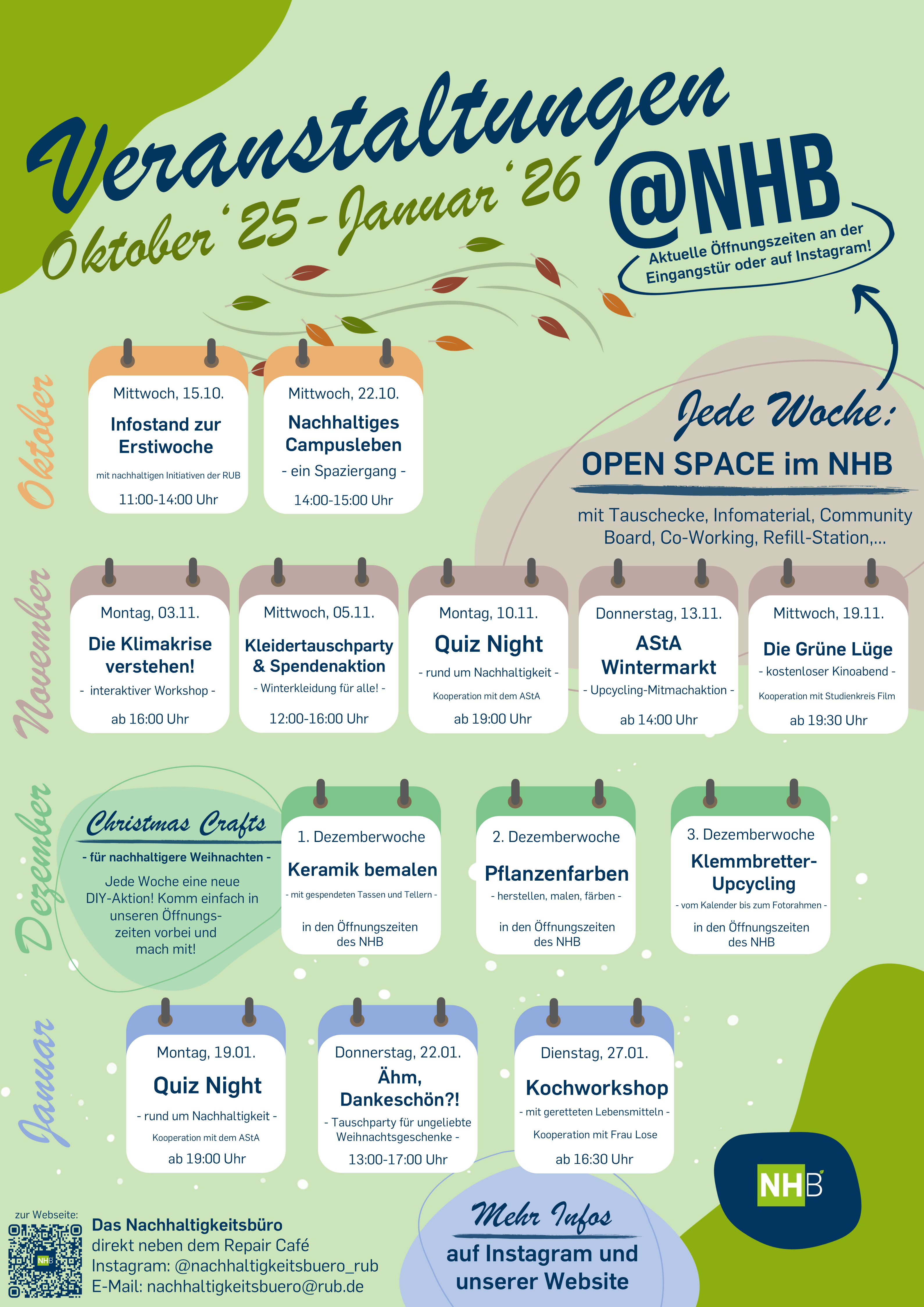 Über eine Anmeldung per Instagram-Direktnachricht oder auch gerne per E-Mail an nachhaltigkeitsbuero@rub.de wären wir euch sehr dankbar, ansonsten sind aber auch spontane Gäste herzlich willkommen!